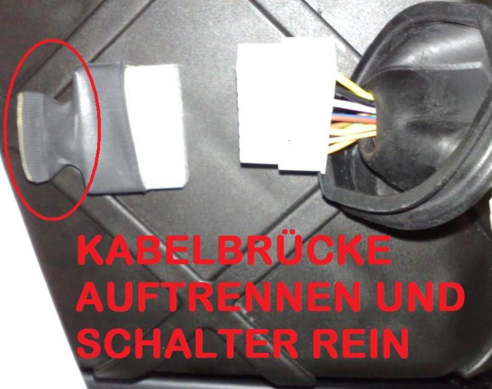 Unter dem schwarzen Schrumpfschlauch ist "EINE LEITUNG" die trennst Du auf und machst einen Schalter dran, z.B. im WK Fach oder neben dem Federbeindämpfer, da sucht ja keiner danach und der ist auch noch gut geschützt.