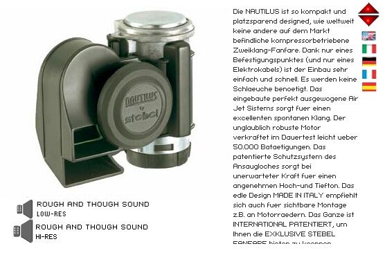 Hmm, bei meiner LC4 ist der Auspuff lauter als die Hupe... bei der LC8 erreicht man mit nem Vollgas-Stoß aus den Leos (mit DB Eatern!) hinter schleichenden, aber beide Spuren benutzenden Dosenfahrern auch mehr, als mit der Micky Maus Hupe... also wozu noch 600g mehr dran schrauben?