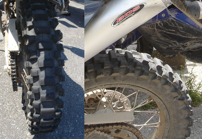 Übrigens werden die Motocross-Reifen an der Karkasse gemessen und die Straßenzugelassenen an den Stollen. ein 120/100-18 Crossreifen ist praktisch gleich groß wie ein 140/80-18 Enduroreifen.