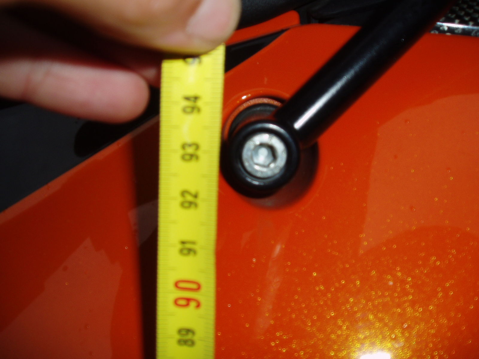 Die Werte sind bei einer 04´er Adventure auf Hauptständer. Blinker links mitte 103 cm, rechts 103,5 cm. Schraube Haltebügel mitte, links 93 cm, rechts 93,5 cm.