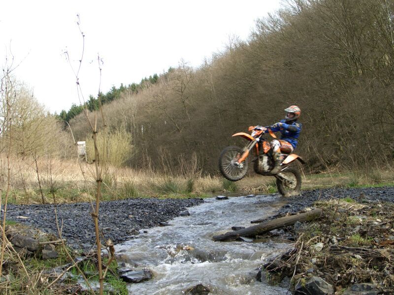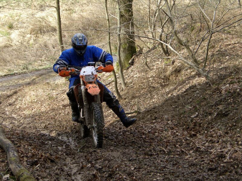 Nunja es ging direkt ab auf nasse Wiesen, matschige Waldwege, durch den Bach hindurch, über Äste weg und bergauf im Matsch und dann wieder runter, alle nochmal , jetzt bitte im Stehen, bitte soviel wie möglich im Stehen usw usw...