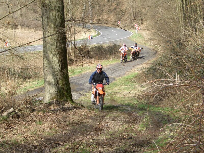 Dann alle nacheinander die Strecke abgefahren, Hans Martin ( Instruktor) mitten auf der abschnitt um wunderschöne Fotos zu machen , Norbert (Chef) oben aufgepasst und Jens (Instruktor) unten um uns mit Ratschlägen, Startzeichen und Hilfe beim Moped hochheben zur Seite zu stehen.