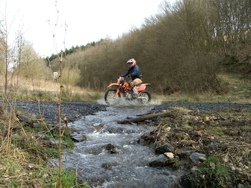 Da komme ich auf den Hof vom lieben Norbert Graß in Ascheid und er meint ich könne auch gerne mit seiner 250 EXC f fahren und dann kann mein Mann auch mit fahren.