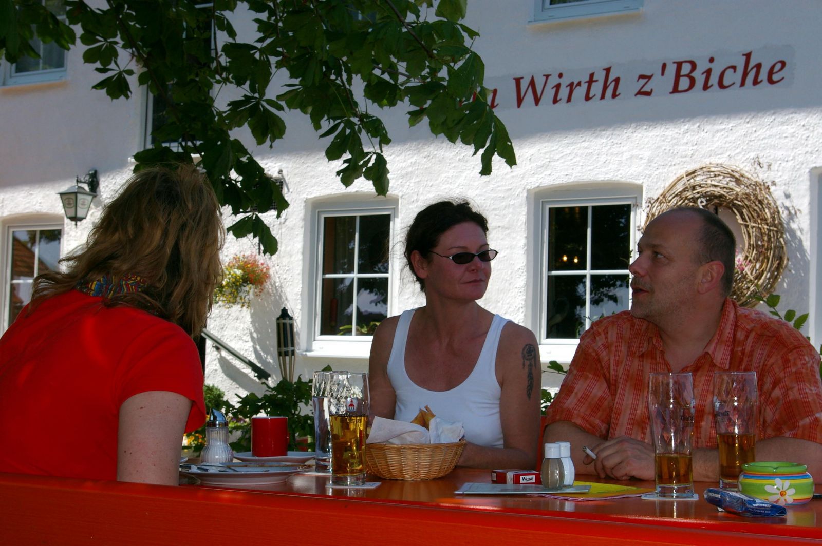 Der Wirt z Biche, auf Hochdeutsch, das Gasthaus in Bichl, ist für uns die Entdeckung der Saison. Ein liebevoll gestalteter Biergarten nette Gäste werden von sehr netten Bedienungen mit bayrischen Schmankerln zu moderaten Preisen verwöhnt. Hier ist die Welt noch in Ordnung. Keine Massenspeisungen vollzogen von gestressten Saisonarbeiterinnen, die mit Müh und Not ein gebrochenes „Guten Tag“ hervor bringen, wie wir das oft in den Bergen erleben müssen.