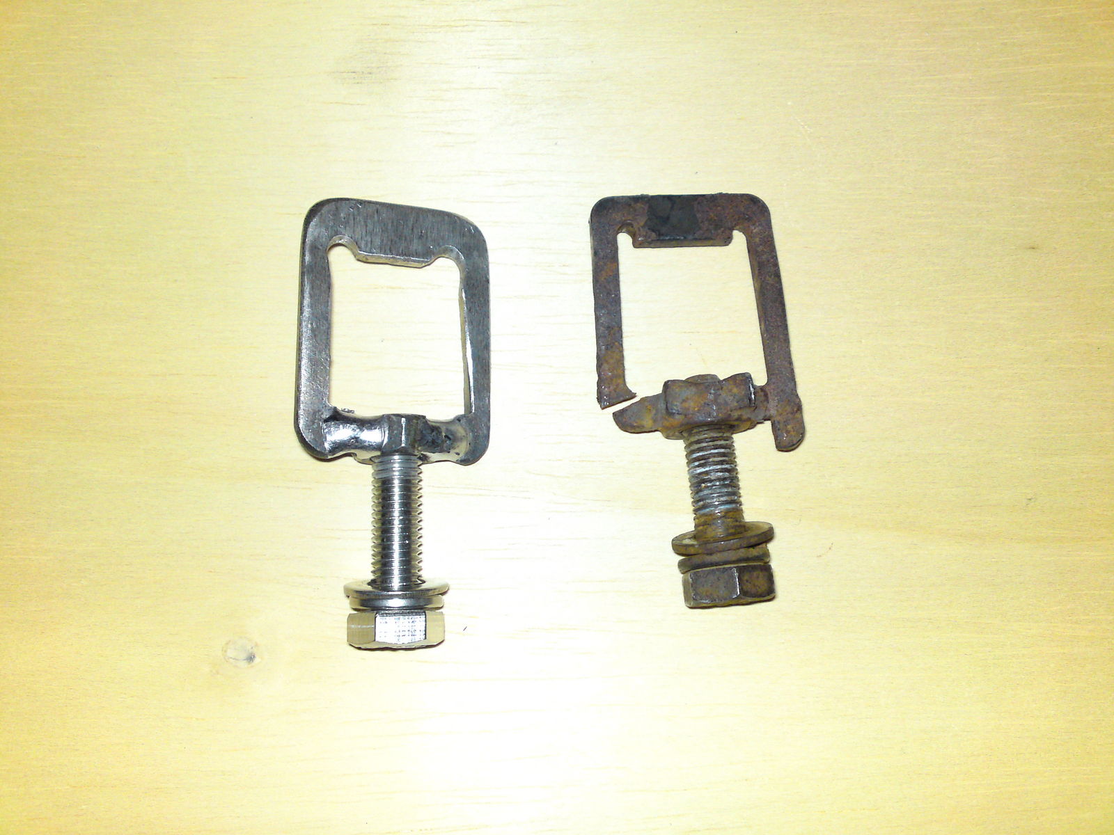 Ja, bei mir auch abgerissen... habe da vor langem provisorisch ne 3mm dicke U-Scheibe mit 4cm Durchmesser als Federhalter an die Mutter angeschweisst.... und vergessen. Das Provisorium hält immer noch Cool