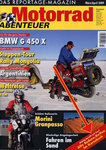Im Motorrad Abenteuer, Ausgabe Maerz/April ist ein interessanter Ueberblick ueber die gaenigsten Enduro Reifen auf Seite 86.
