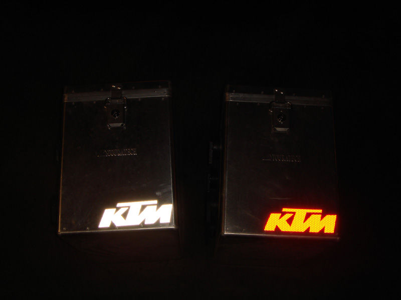 Ich habe das KTM-Logo auch aus Reflexfolie ausgeschnitten und auf meinen Ortlieb-Rucksack geklebt, auch zur Sicherheit.