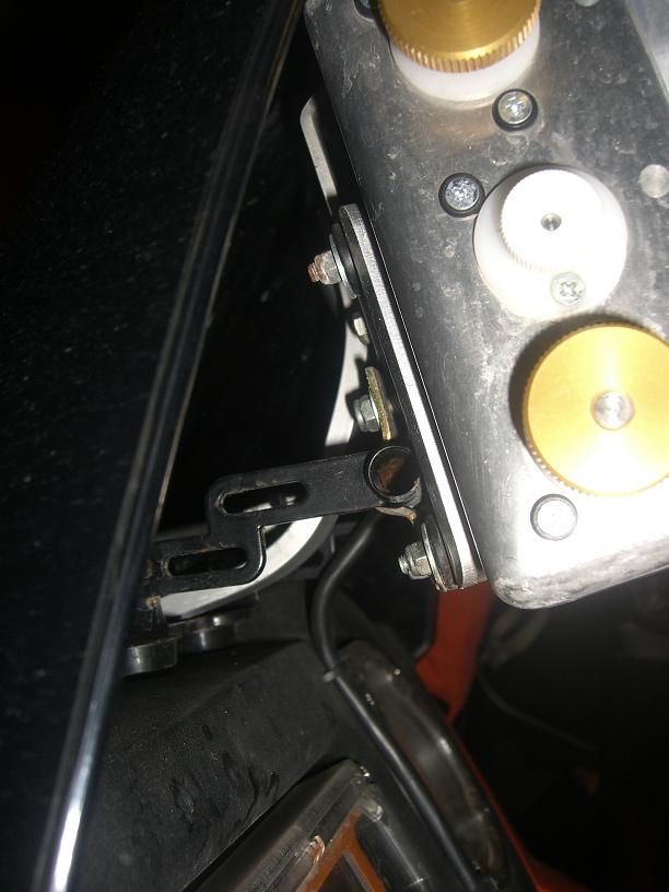 Was die Strebe betrifft, die hab ich mir selber gebastelt und die ist am Cockpit-Halteblech unter dem Plastikschutz befestigt und NICHT gummigelagert sondern direkt mit dem Roadbookhalter verschraubt. Dadurch ergibt sich eine starre Verbindung wischen Cockpitblech und Roadbookhalter .