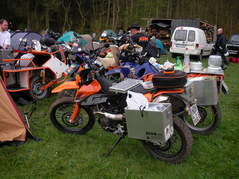 Die Seitentaschen sind die einfachen von LOUIS oder so. Der Reservekanister hat auch noch platz gefunden und wird für Island einen 10L weichen.