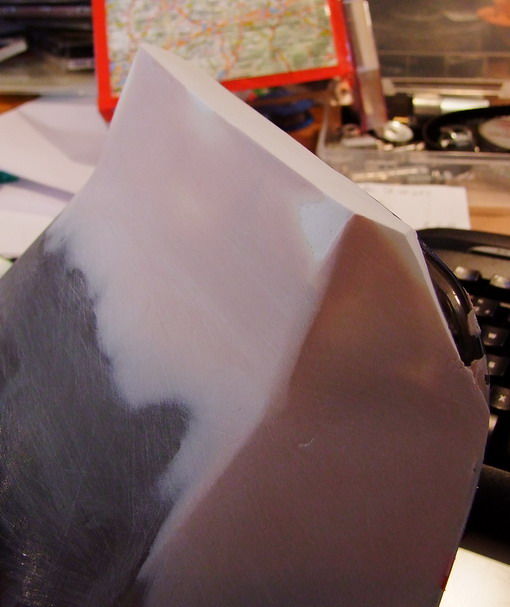 Du machst jetzt eine komplette neue Front, oder Laminierst Du den oberen Teil an? Ich verfolge noch immer meine Ursprungsidee, diese sieht ja Deinen Knick oben nicht vor. Meinst Du der Kunstharz verbindet sich richtig gut mit der Verkeidungsscheibe??