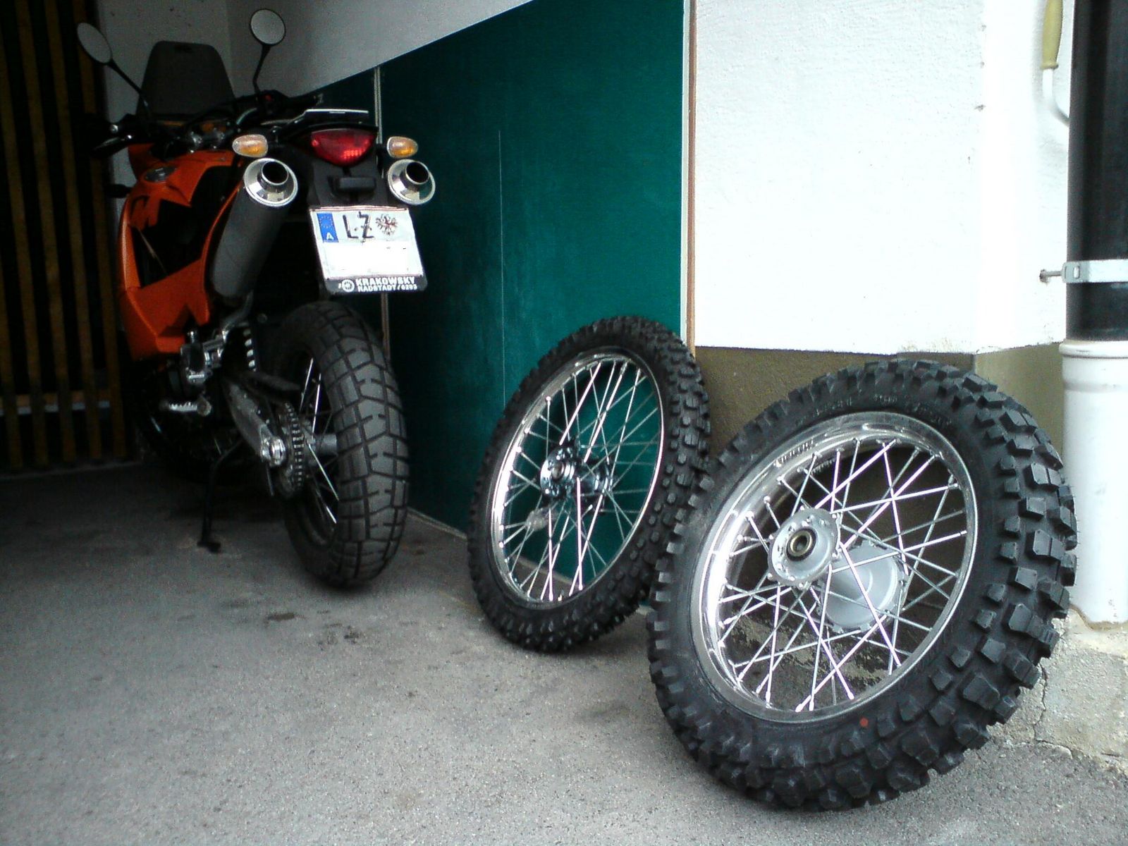 Vorne und hinten Pirelli MT 21 montiert mit Crossschläuchen