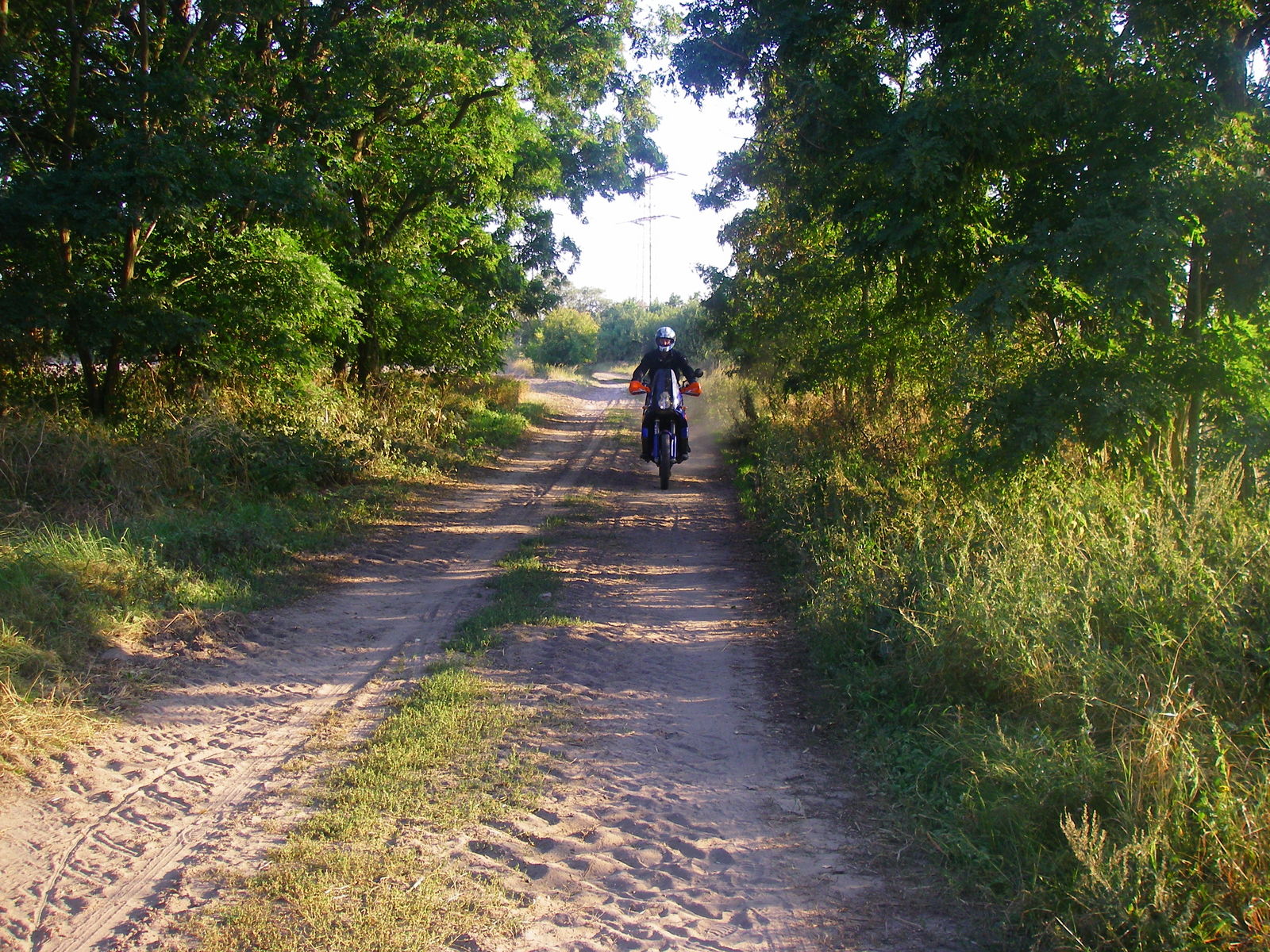 Heute war er das allererste Mal von der Straße runter und etwas im leichten Gelände unsure . Nur ein paar Sandwege und ein kleiner Hügel . Ich musste ihn allerdings mit meiner 950 fahren lassen. Das ekelhafte Geruckel der 990 ist für jemanden, der die Materie "stehend Fahren" nicht beherrscht, einfach nicht beherrschbar heul .