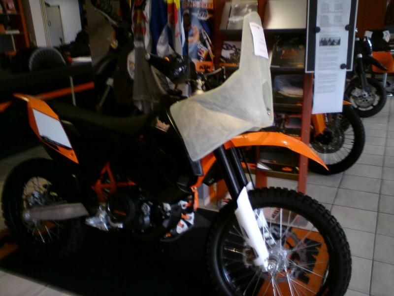 Mein Favorit mit großem Tank und hohem Windschild ist auch recht hübsch,hier noch an einer 640 Adventrure 2001-er.