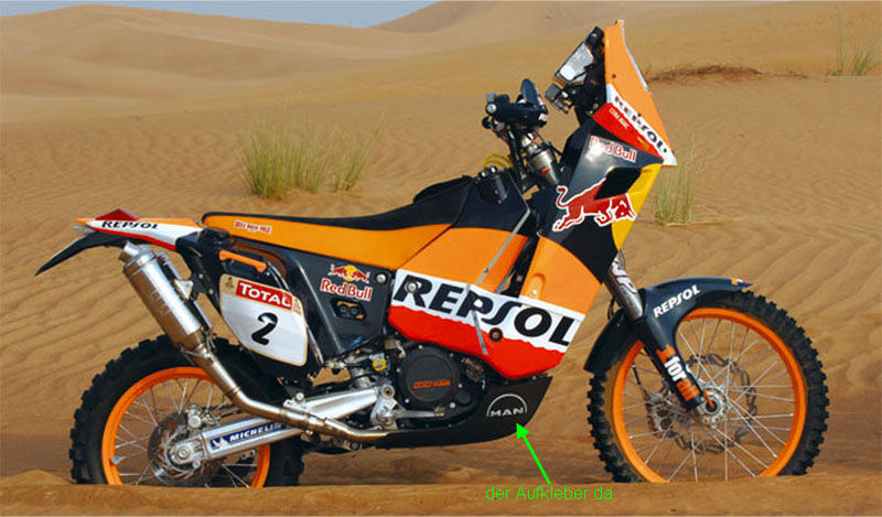 Da ich neulich mal von einem hier ausm Forum gefragt worden bin, hab ich ein paar Aufkleber mit MAN-Logo, wie sie auch auf den Rallye-Maschinen drauf sind, auftreiben können.