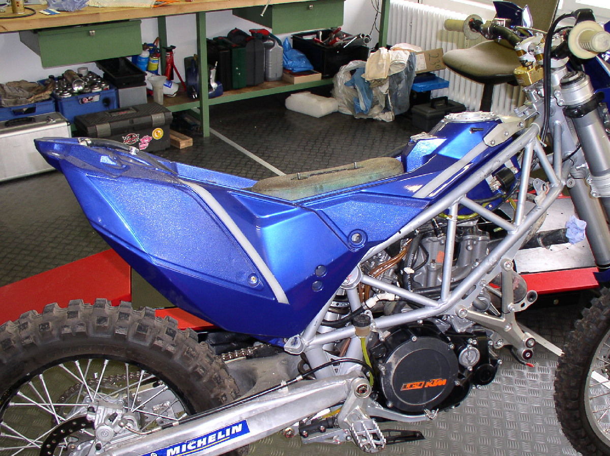 Jetzt bin ich aber mal sauneugierig... Die 690 Baja ist ja schon ein verdammt heisses Gerät (und wenn die auch tatsächlich genau so gekommen wäre, hätte sie bestimmt noch ein paar Anhänger mehr), und ich hab im Ami-Forum die Story von dem grauhaarigen Käufer der Baja gelesen und sehe jetzt, dass Du die auch bei Dir im "Portfolio" drin stehen hast... hast Du etwa auch eine von den Werksmaschinen?