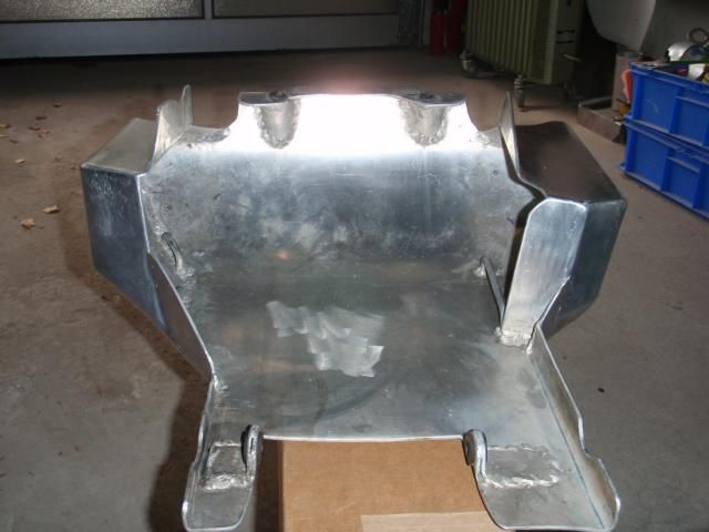 der motorschutz wird bei mir sicher nicht in serie gehen, damit erübrigt sich die frage über den preis . mir hat der schutz außer dem material (3mm Aluplatte) nichts gekostet. ein paar arbeitsstunden für blech biegen und 2 bier für den schweißer, der die 3 teile verbunden hat.