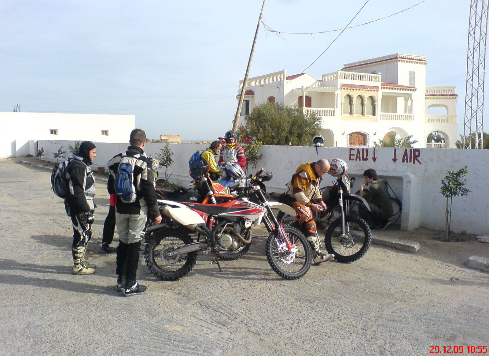 ich bin am 28.12.2009 gemütlich von Dresden nach Frankfurt geflogen, wo ich einen Teil der andern Leute der Wüstentruppe traf, von denen ich bis dahin niemand kannte. Mein Motorrad hatte ich 14 Tage vorher mit dem Anhänger bei -20° zum rund 500 km entfernten privaten Veranstalter gebracht, der Thomas begleitete mich. Da ich nur ein bestimmtes Zeitfenster für meinen Jahresurlaub habe und gern mal mit meinem eigenen Motorrad in die Sahara wollte, war die Auswahl an Veranstaltern dann doch nich so groß. Auf eigene Faust war mir für das erste mal richtig in die Wüste zu riskant und für 4-active gabs gute Referenzen.
