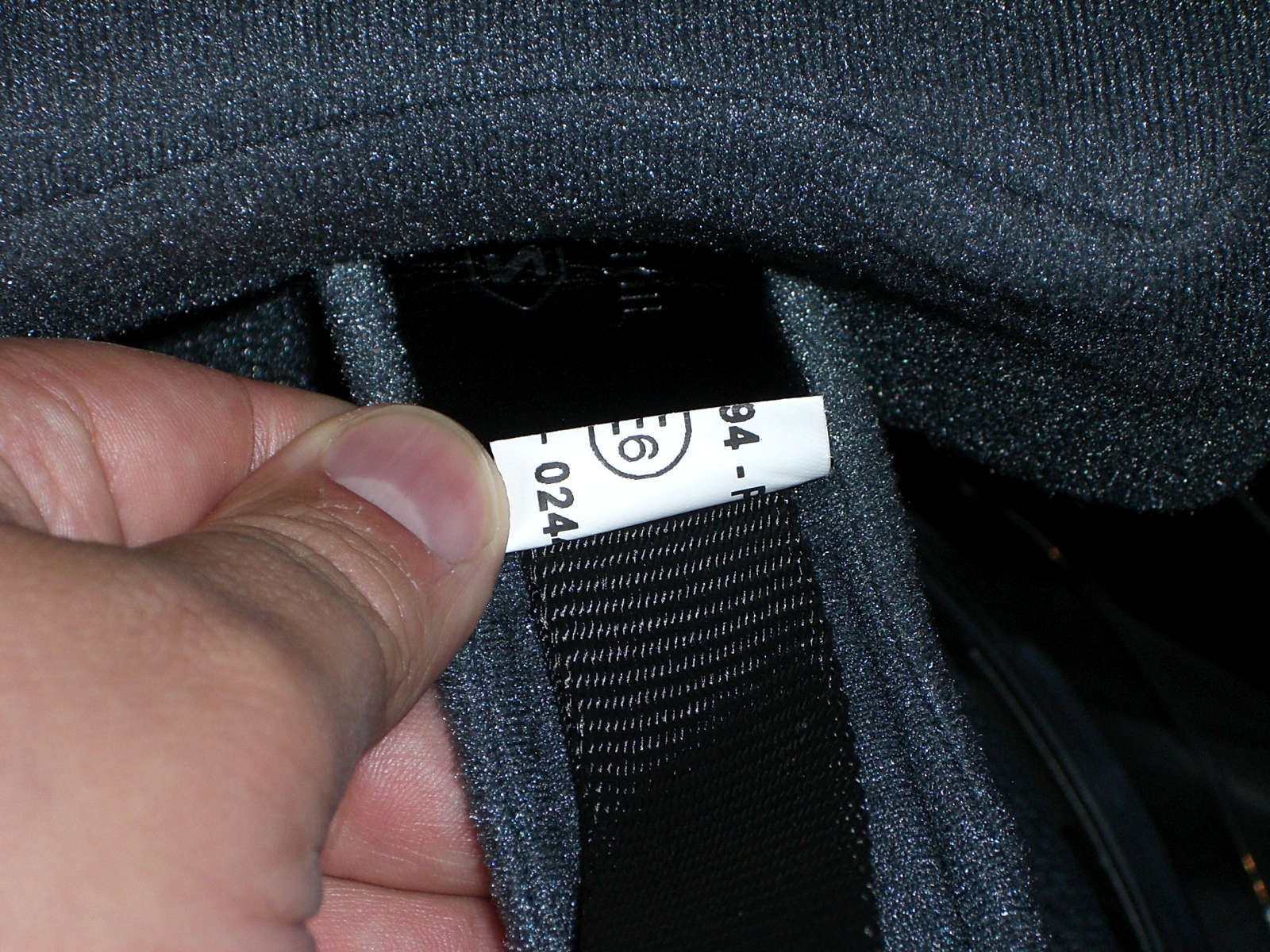 Anbei 2 Fotos von dem eingenähten weißen Schildchen am Kinnriehmen.