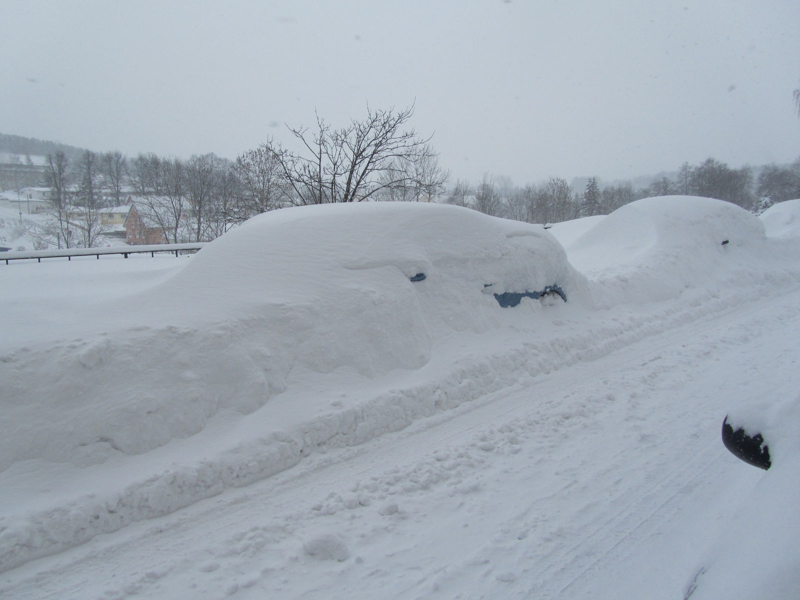 60 cm Vorhersage. Habe meinen Kombi verscheuert und einen Jeep gekauft. Winterreifen für das Auto meiner Frau und zwei extra Schaufeln. Habe den Kühlschrank aufgefüllt. Meine Frau will einen Holzofen, falls der Strom ausfällt. Das ist lächerlich - schließlich sind wir nicht in Alaska.