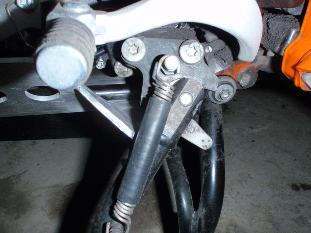 in einem Beitrag hier wurde ja mal das Problem beschrieben, dass bei einem Sturz die Aufnahme des Seitenständers den Motorblock zerstört, ich habe an meinem Bike der Motorschutz von TT dran, leider schützt dieser diese Problemstelle auch nicht, daher habe ich jetzt hier etwas modifiziert, damit sollte der Bereich eigentlich ausreichend geschützt sein, was meint Ihr, sollte damit das Problem beseitigt sein?