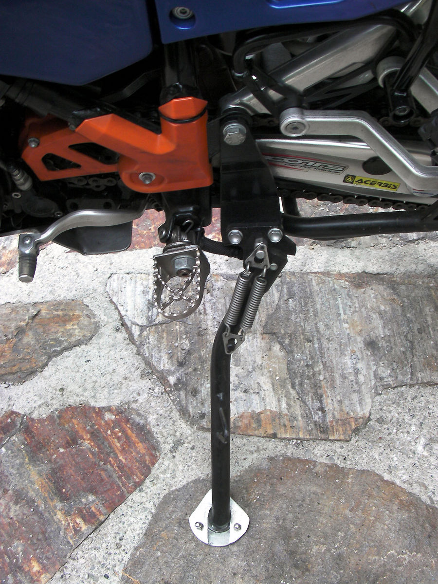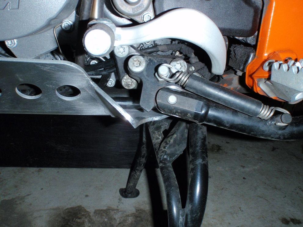 in einem Beitrag hier wurde ja mal das Problem beschrieben, dass bei einem Sturz die Aufnahme des Seitenständers den Motorblock zerstört, ich habe an meinem Bike der Motorschutz von TT dran, leider schützt dieser diese Problemstelle auch nicht, daher habe ich jetzt hier etwas modifiziert, damit sollte der Bereich eigentlich ausreichend geschützt sein, was meint Ihr, sollte damit das Problem beseitigt sein?