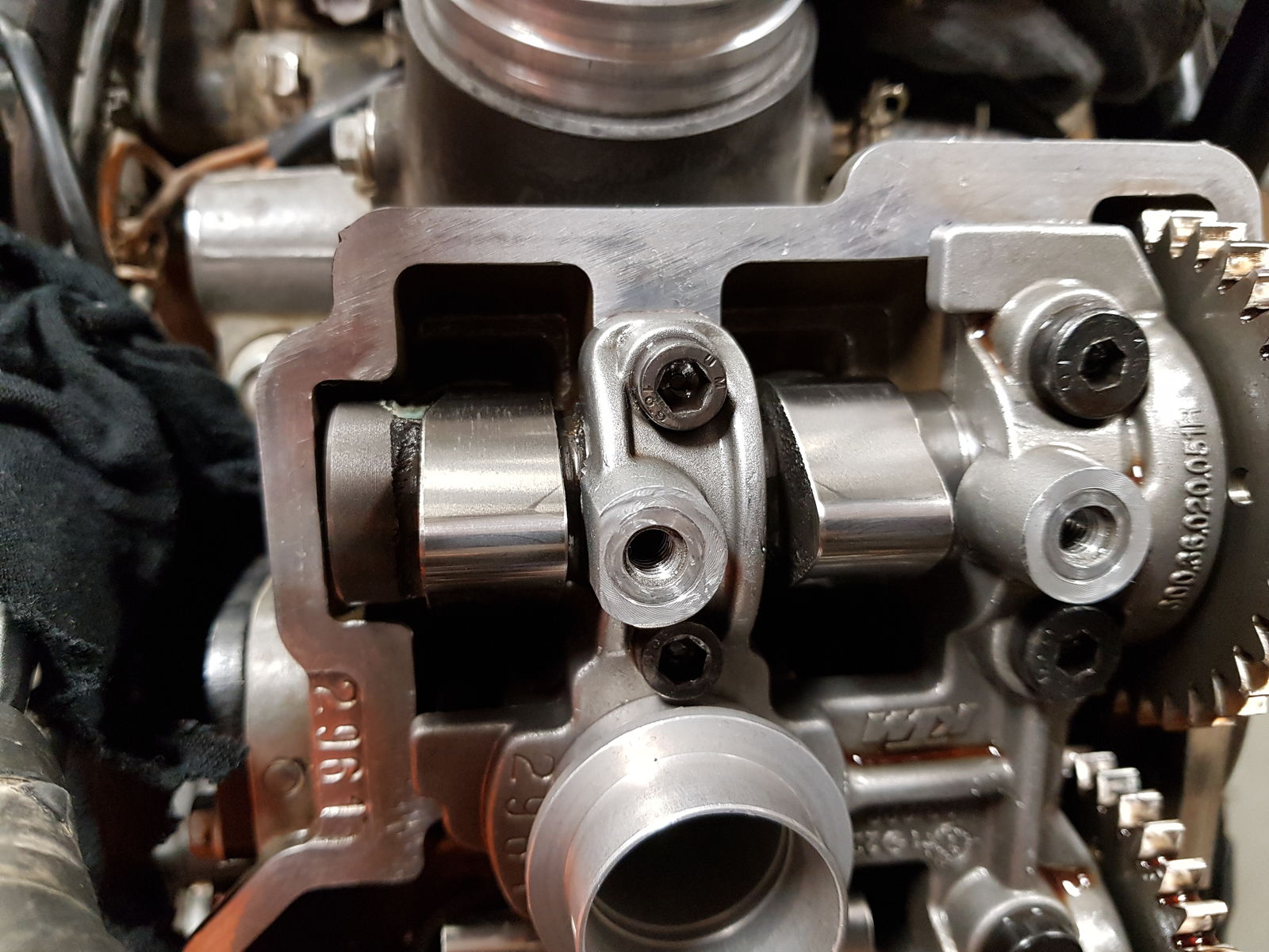 Gedacht war eine reguläre Ventilspielkontrolle mit evt. Einstellen. Die Werte waren auch soweit i.O. und völlig nachvollziehbar. Einstellen einmal nötig (1x Einlass bei 0,09-0,10), zweimal fakultativ möglich (1x Einlass bei 0,12, 1x Auslass bei 0,26), sonst i.O.). Nur die "Optik" der Nockenwellen gefällt mir ganz und garnicht.