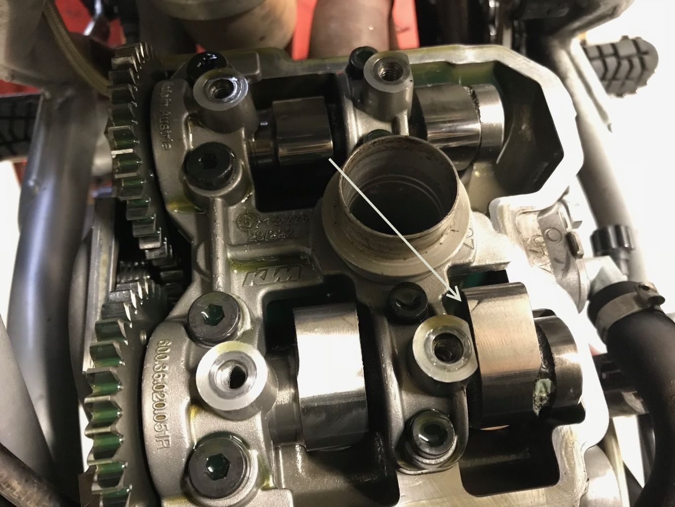 Wir haben damals seitens KTM nie einen nachvollziehbaren, technischen Grund für diese Anpassung der Vorgaben erfahren, auch bei Rückfragen bei Schulungen nicht. Ich persönlich halte mich bei den 950ern immer noch an die ursprünglichen Vorgaben. Insofern würde ich raten, das genannte Einlaßventil - gemessen mit 0,09-0,10 - tatsächlich unbedingt anzupassen. Und die beiden mit 0,12 gemessenen Einlaßventile sind aus meiner Sicht bereits nah an der Einstellgrenze. Der Auslaß mit 0,26 ist noch OK.
