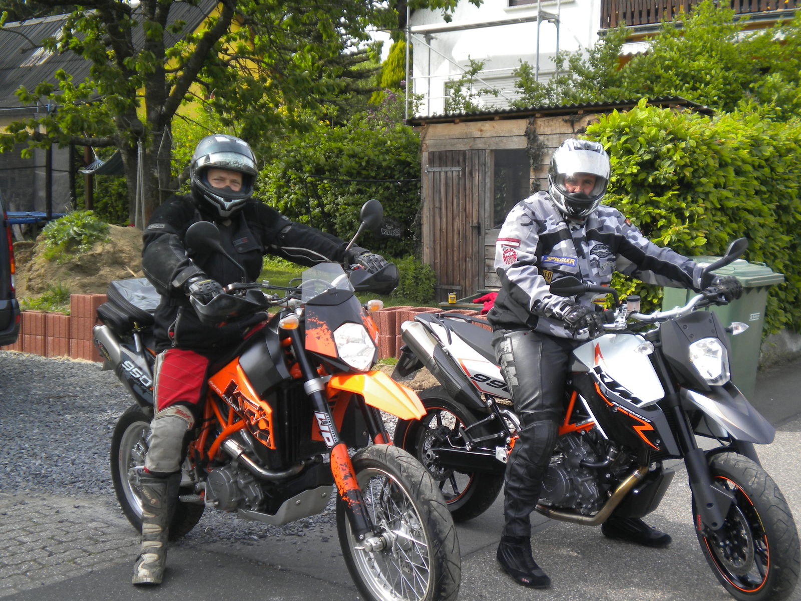 Der Eine grinst breit weil er sooooooo ein cooles Moped neu hat und der Andere weil er jetzt jemanden in der unmittelbaren Nachbarschaft hat, um dem SM Radsatz mal ausgiebig zu fahren Mr. Green Mr. Green Mr. Green