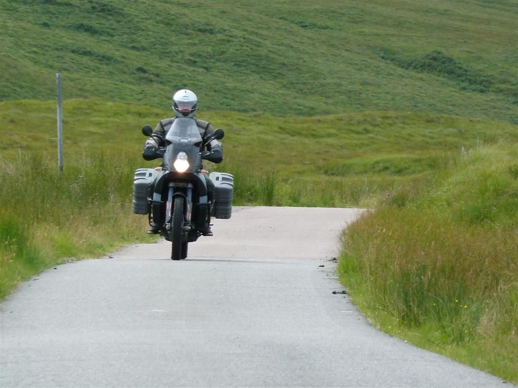Da ich also nichts im Hinblick auf Schraubertipps oder sonstigen Verbesserungen der Adventure beitragen kann (ok, neben Hosi’s Weltraumteil ist die einzige, wirkliche Änderung an meinem Mopped eine umgepolsterte Sitzbank, wirklich jeden Cent wert!), dachte ich mir, vielleicht macht Euch ja ein kurzer Bericht über Schottland einmal Lust, auch dahin zu fahren. Da gibt es nämlich ein echtes Fehlverhältnis zwischen BMW GS und KTM! BMW fährt da eigentlich jeder Touri, natürlich fast immer in der Himalaya-Vollausstattung, also mit Zusatzscheinwerfern, Anzeigegeräten, die kein Mensch braucht, und allen möglichen Anbauteilen, deren Sinn sich erst durch Nachfrage beim Fahrer erschließt (oder eben auch nicht – echt erstaunlich, was man so alles an eine BMW schrauben kann, muss unbedingt mal die Seite ‚www.Mach-die-Kuh-teuer.de’ finden!)
