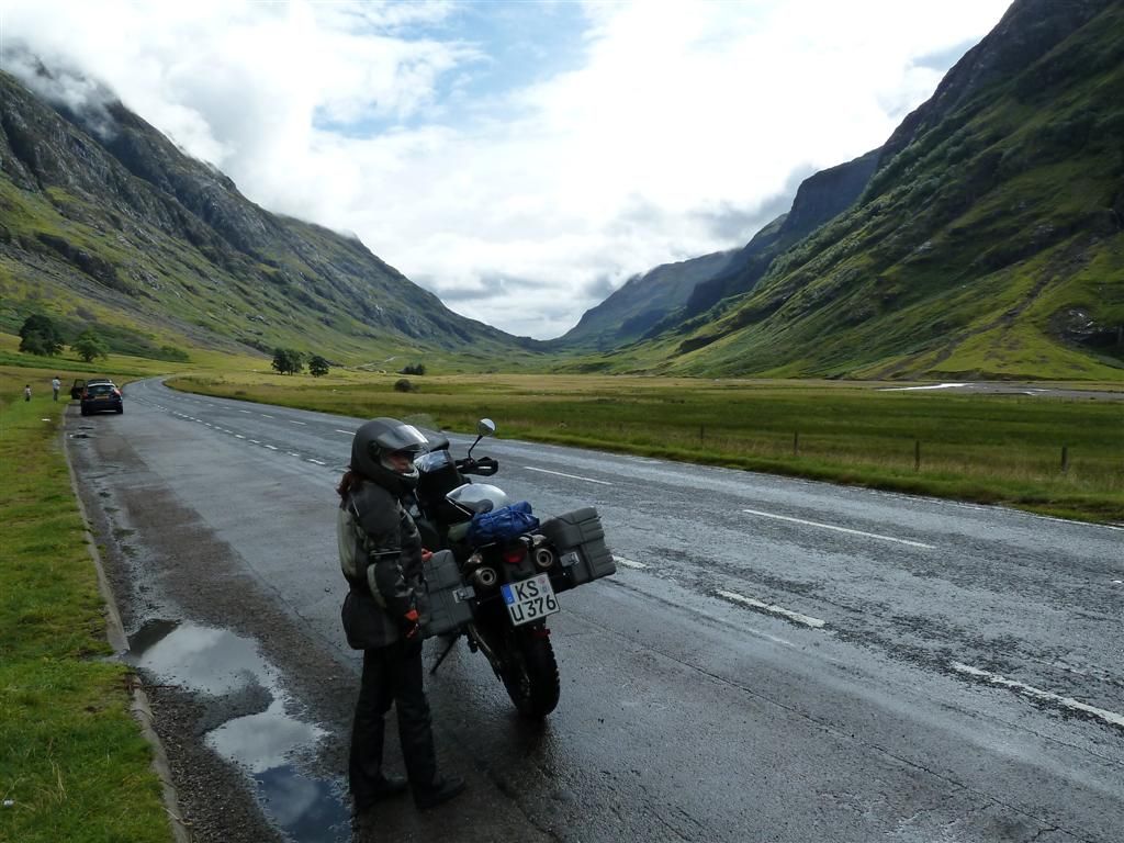 Von Edinburgh ging es dann am nächsten Tag nach Fort William, etwas südlich in den Highlands gelegen. Dort bezogen wir dann endlich ein Quartier für mehrere Tage, so dass wir dann ohne Gepäck die Gegend erkunden konnten. Wir haben Eilean Donan Castle besichtigt (das Schloss also, welches auf jeder zweiten Postkarte von Schottland zu sehen ist), Nessie gesucht und dabei festgestellt, dass das westliche Ufer von Loch Ness touristisch voll vermarktet wird, das östliche Ufer aber absolut grandios und einsam ist. Sollte Ihr mal da sein: Seht Euch einmal das Nessi-Zentrum an, wechselt dann aber auf die östliche Seite von Loch Ness – viel interessanter für Euch und die KTM, aber achtet auf den Spritvorrat – Tankstellen sind da eher selten!