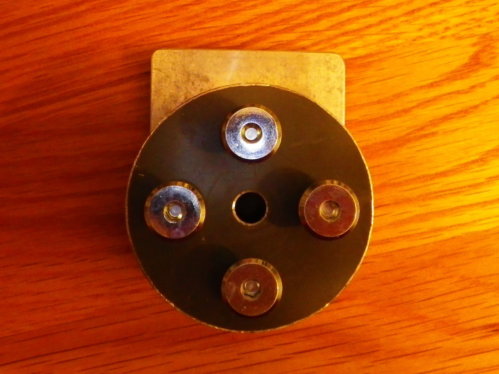 Die Halteplatte aus 6mm Alu. Verschraubt mit 6mm-V2ASchlossschrauben in 9mm Hülsenmuttern. Das innere Stützblech ist aus 3mm Alu.