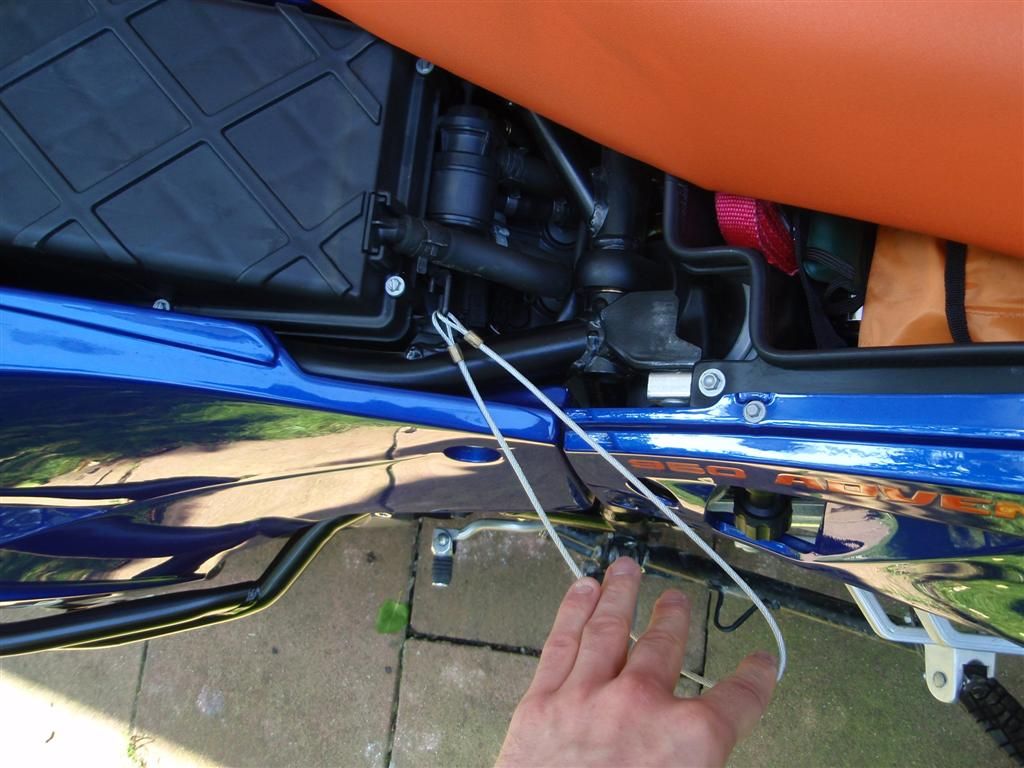 Bei meiner 2005er ist die Einhängeöse unter der Sitzbank etwa in Höhe der linken oberen Tankecke am Lufikasten dran. Und ich nutze das gelegentlich Cool