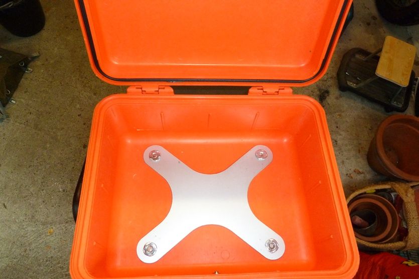An- und Aufsetzen des Fotokoffers. Ober- und Unterteil wird dann noch durch