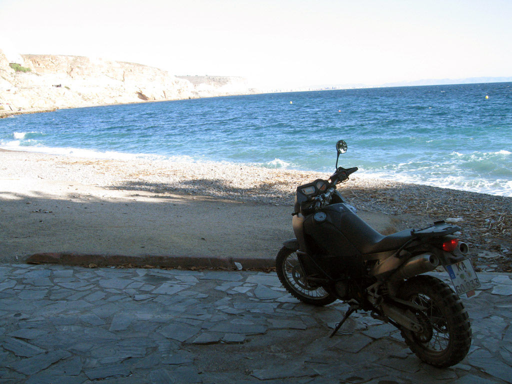 Die Tour nähert sich dem Ende, heute haben wir eine letzte gemeinsame Runde gedreht: Eigentlich wollten wir noch einmal in die Berge, aber diesmal war's mir zu kalt. Eine heimliche Crossstrecke entdeckt und ausprobiert. Nochmal über' Berg und nochmal ans Meer, heute abend nochmal Tapas ... das Mopped, das nach Hause darf, ist bereits verstaut.