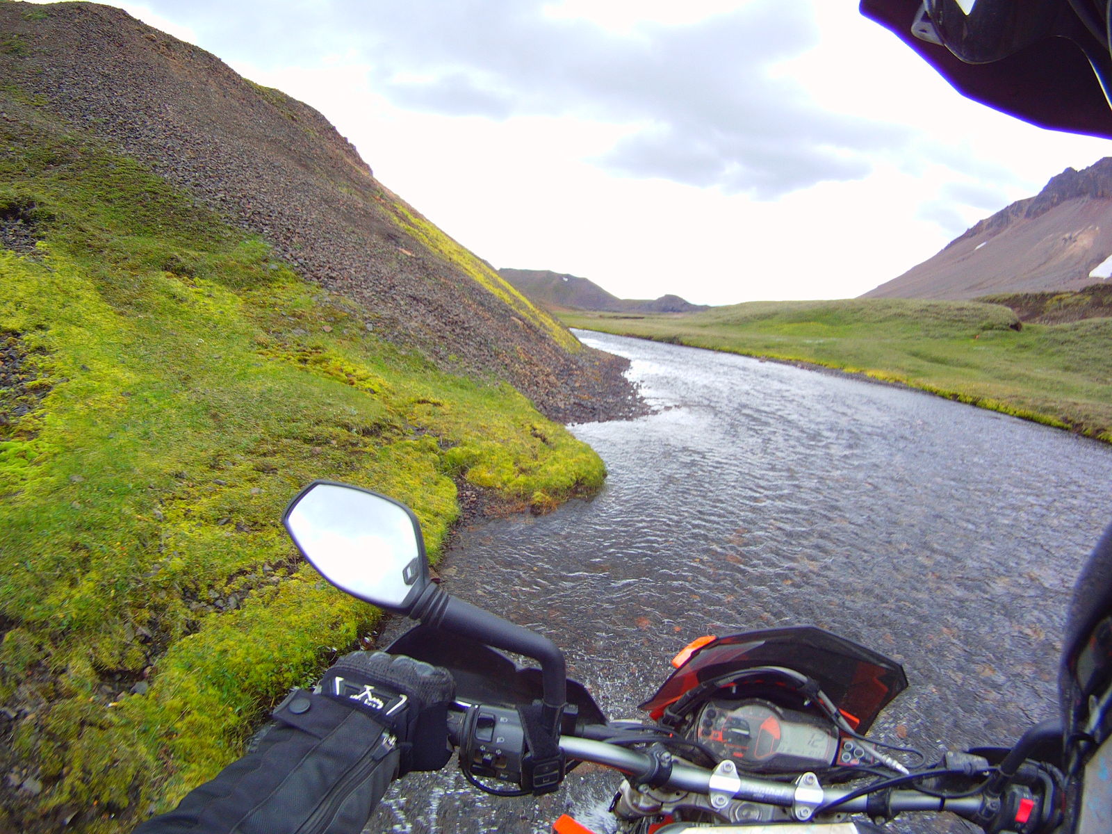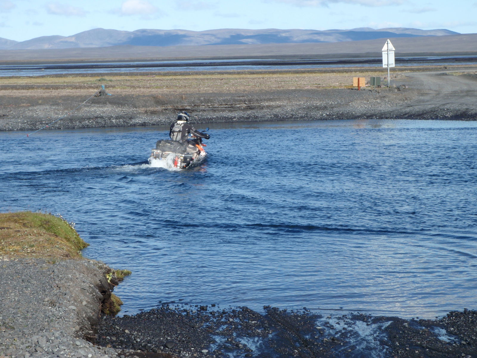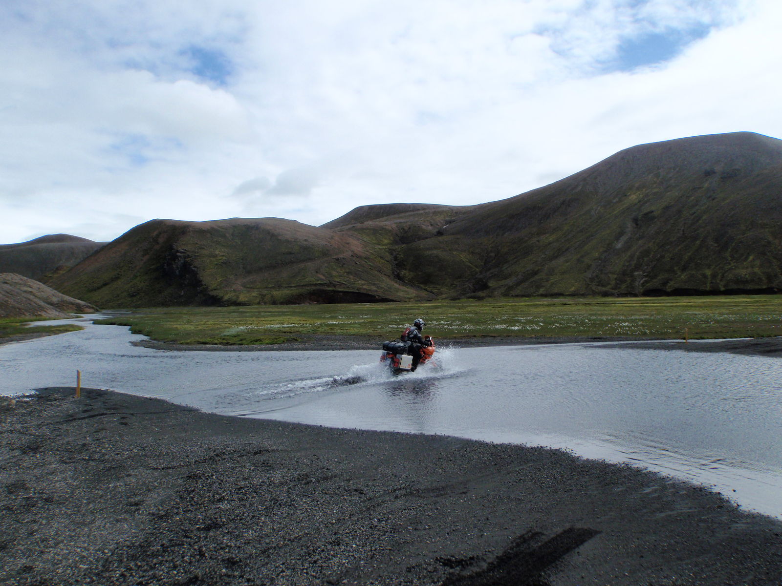 Fahrtechnisch haben wir uns überwiegend im Hochland aufgehalten und die Ringstraße nur dann benutzt, wenn es nicht anders ging (zB. 17 KM zur Einfahrt Laki Krater). Zwei Wochen, 2.500 KM mit 90% Off-Road. Einzig ein defektes Radlager bei der LCC8 ist zu beklagen. (Lippes altes Vorderrad mit 120.000 KM drauf, naja) Mit Rad-Sharing (das der LC4 Adventure passt) sind wir aus der Wüste gekommen und zurück zur Fähre, ansonsten keine technischen Probleme. Keine erwähnenswerten Stürze und abgesehen von einem längelang im Fluß liegenden alten Mann auch ziemlich trocken.