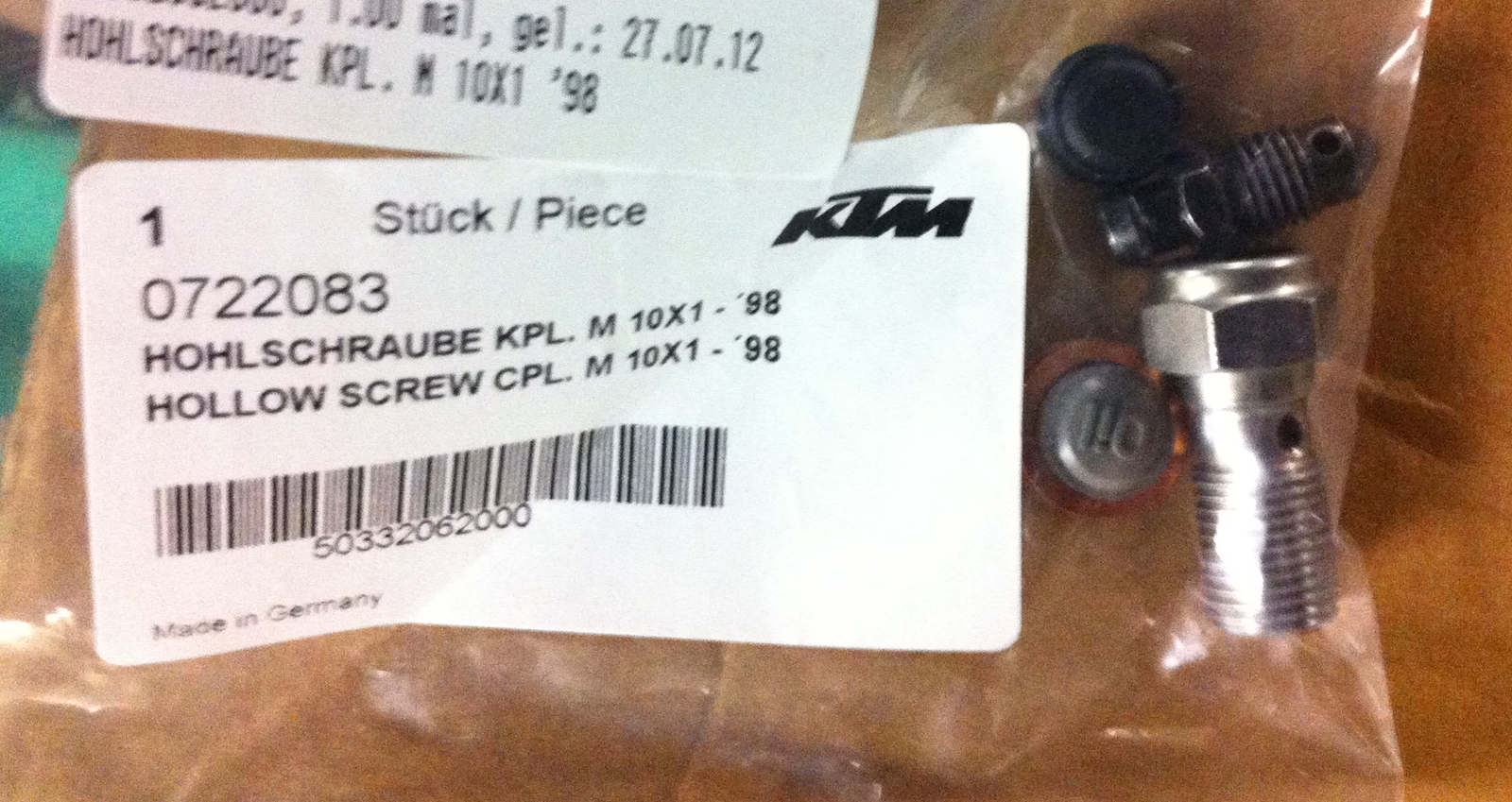 1x HOHLSCHRAUBE KPL. M 10X1