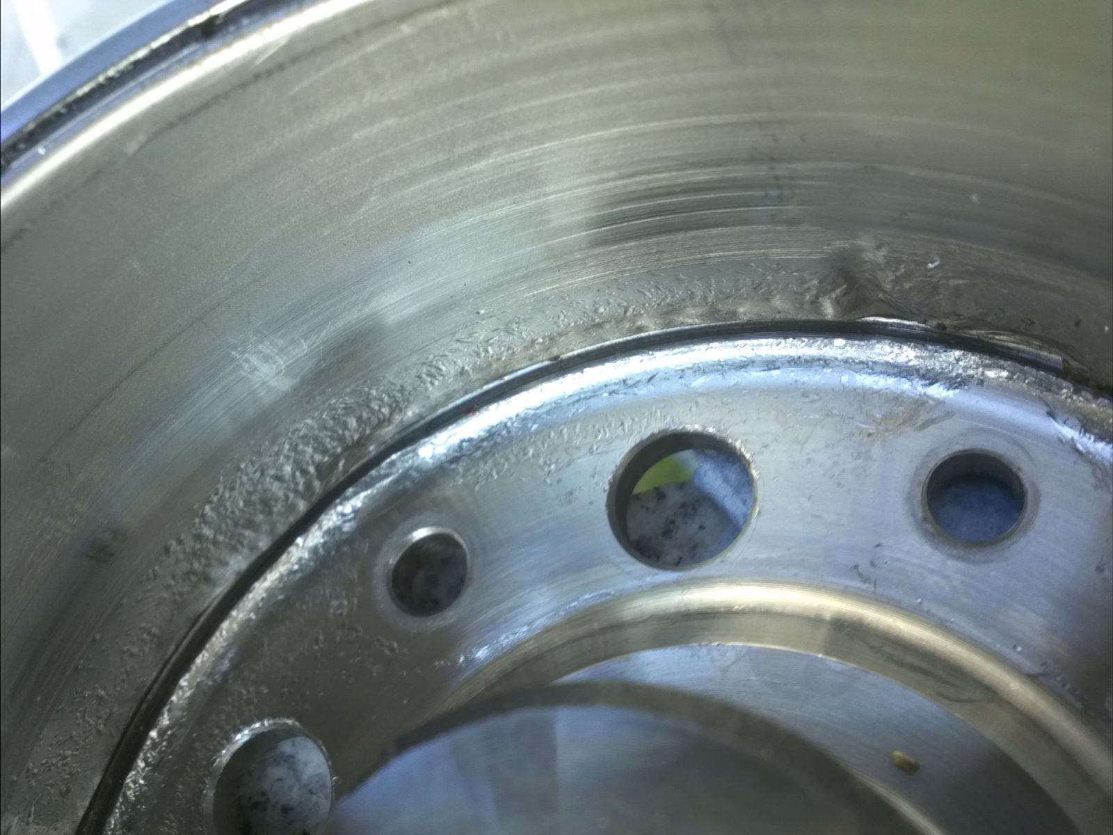 Übel zugerichtet war nicht nur die Lima, sondern auch das Polrad. Siehe Bilder unten. Die losgelösten Schrauben haben eine richtige Nut eingefräst. Irre welche Kräfte da wirken. Wir haben uns dann nach einiger Diskussion entschieden das Teil wieder einzubauen, im Herbst wird es dann durch ein neues ersetzt. In der Hoffnung, das die Unwucht im Hunderstel Bereich liegt und nicht höher.