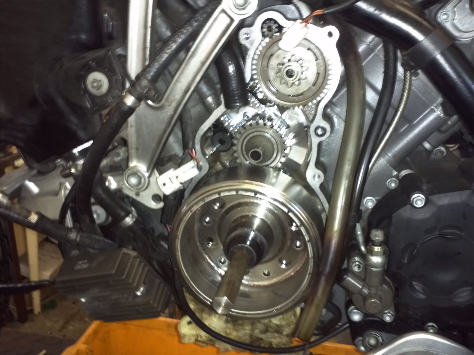 Dank eines sehr guten Freundes und Ex KTM Meisters, haben wir nun gebrauchte gute Ersatzteile gestern Abend bekommen und zu dritt die Kathie in die Mangel genommen. Nach drei Stunden (inklusive dem Selbstbau einer Poltradabziehschraube) schnurrte sie wieder.
