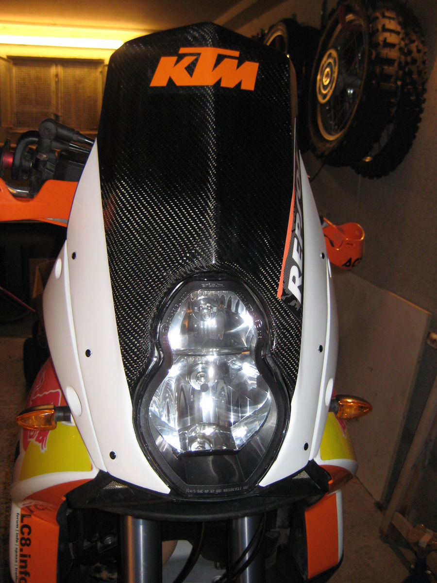 Ich reise ganz viel (Afrika, Zudamericas, usw.) und I liebe die Design von KTM Rally, also Ich habe mir gemacht einnen carbon Windschield mit Rally gesicht.