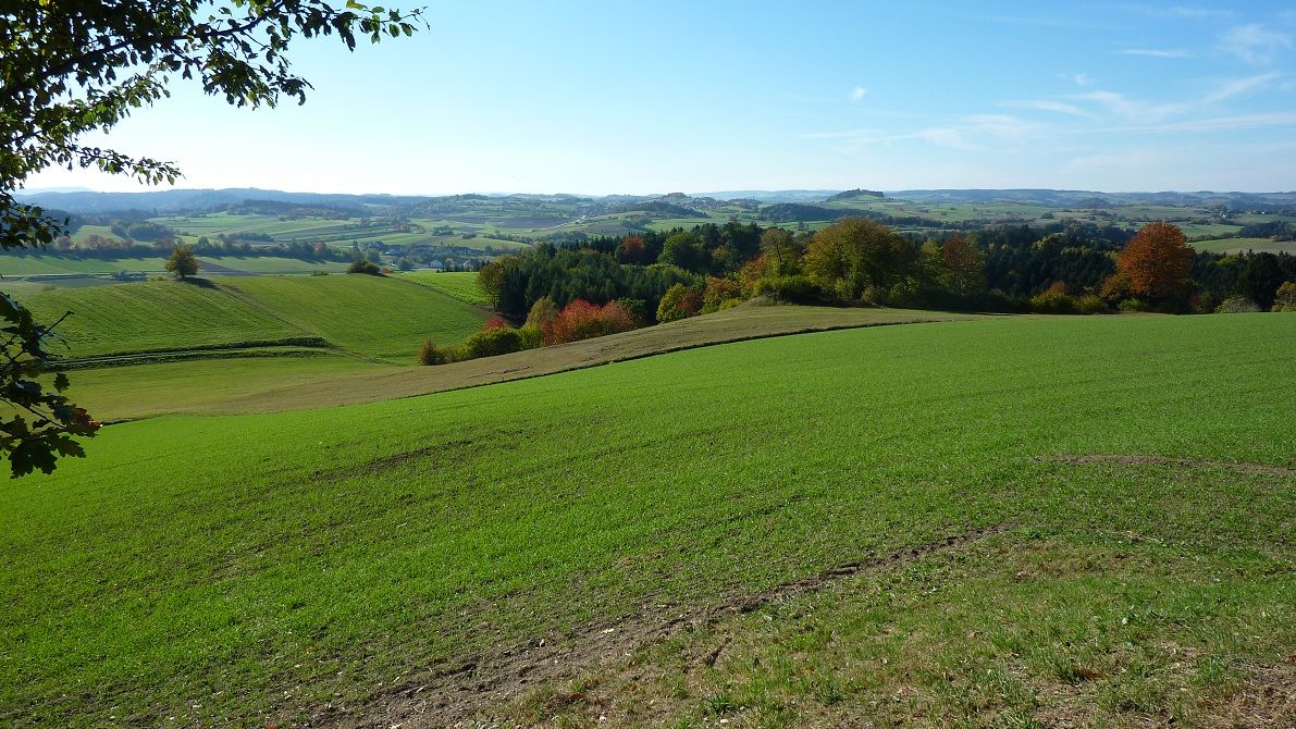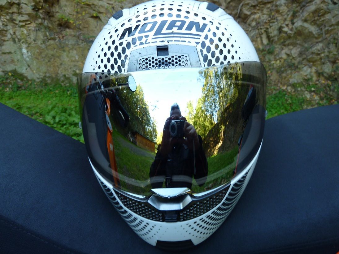 Kern und Ausläufer der Großstadt geduldig hinter mich bringend, gelang ich zusehends in pitoreske [200], der Jahreszeit sehr entsprechende Gefilde und konnte nicht an mir lassen, das eine oder andere Zeugnis davon in die SD-Karte der Lumix zu einzufangen. Da die Kamera schon so arg verstellt war (oder ich nicht Willens, noch schlimmer: nicht fähig (?), in den Pausen gute Einstellungen zu wählen), habe ich sie kurzentschlossen "reset"ed und einfach drauflos geschossen und manch kindlicher Freude ob oder wider (?) des fish-eye-effects am verspiegelten Visier nachgegeben (an dieser Stelle ein kleines "hihi").