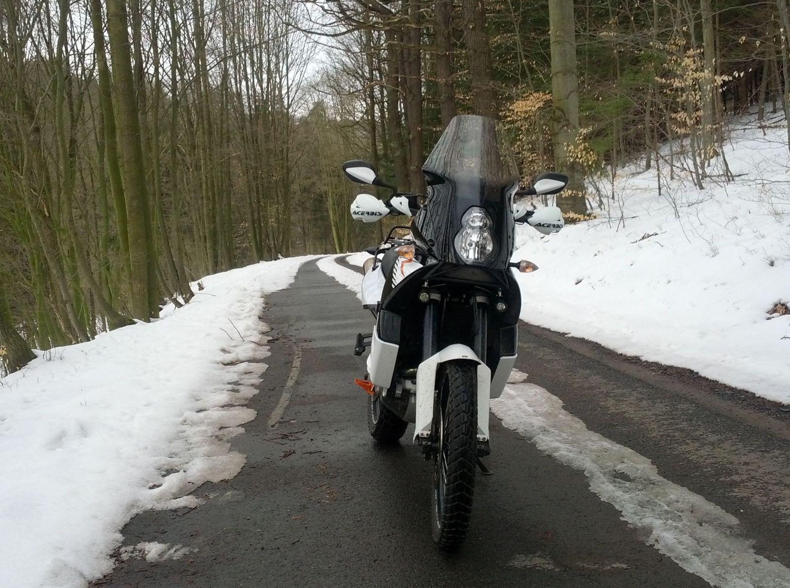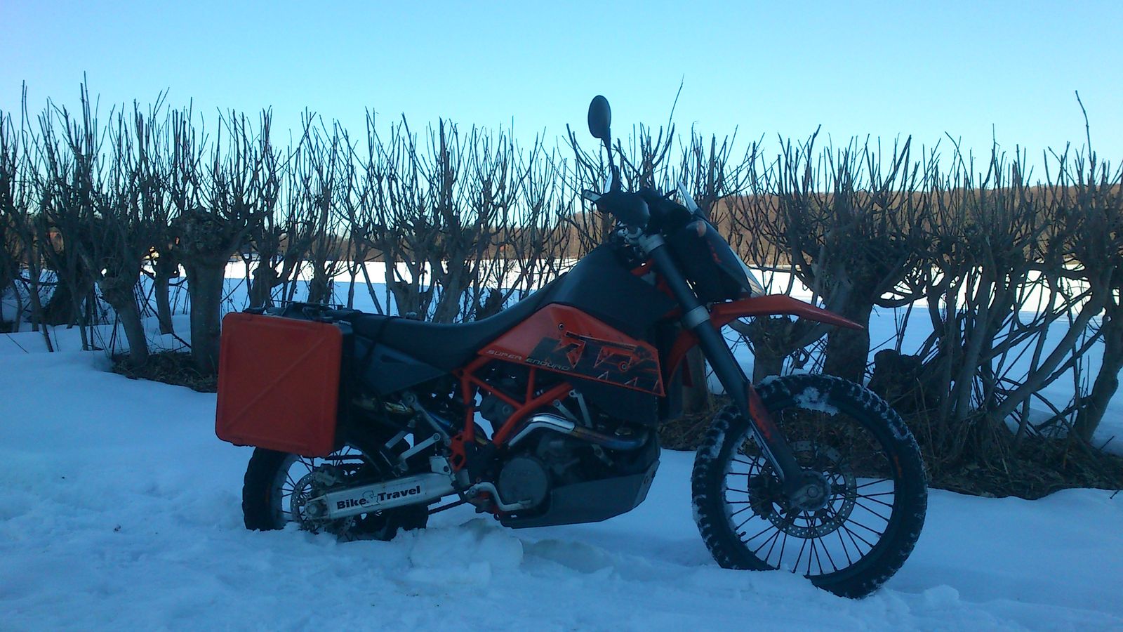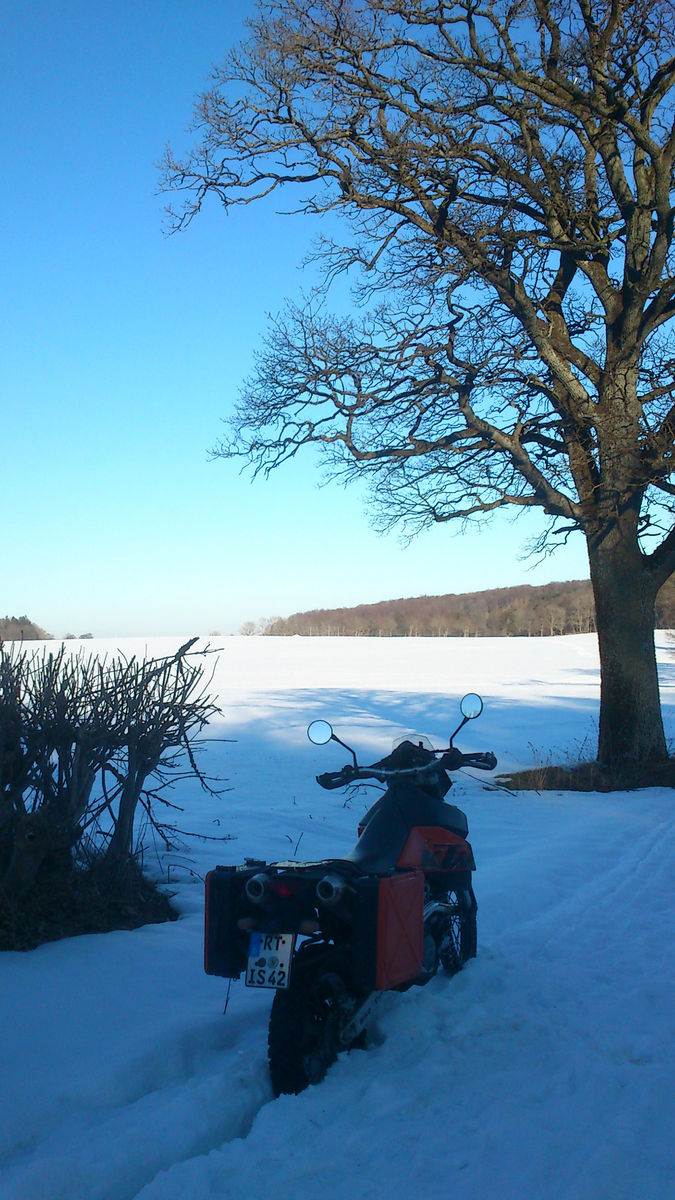 Am We wollte ich mal wieder lernen, wie man die kleine bewegt und hatte mich auch tierisch drauf gefreut auf die 8h knattern. Dass da bis 20cm Schnee lagen, hatte keiner gebucht und keiner gesagt. Ich dache ja, da es zuhause braun und trocken ist, reichen die knapp 50% Profil auf der Husky noch. Denkste, da war verdammt wenig halt am Hinterrad. Dafür wurds uns gut warm unter der Mütze!!! Gefroren hatte keiner!!!