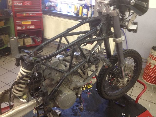 Spendiert wird ein neuer Rahmen samt Schwinge Hinterrad ect ect und mehr