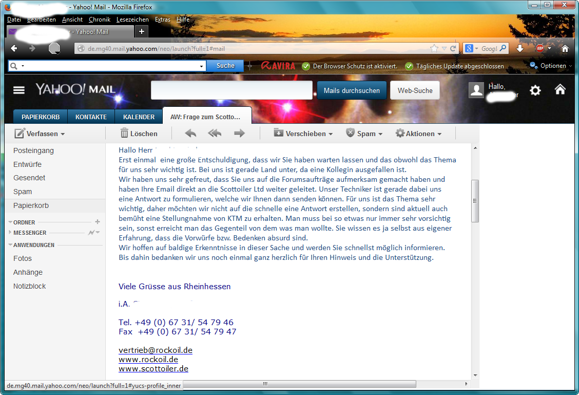 Gerade erste Antwort von Rockoil Smile !