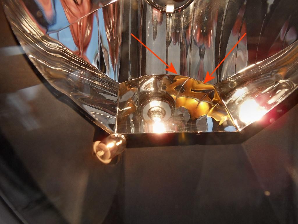 Vor allem das Bild 2468 schaut mir so aus, als ob sich irgendwas im Reflektor spiegelt, aber nicht wirklich der Reflektor verfärbt ist.