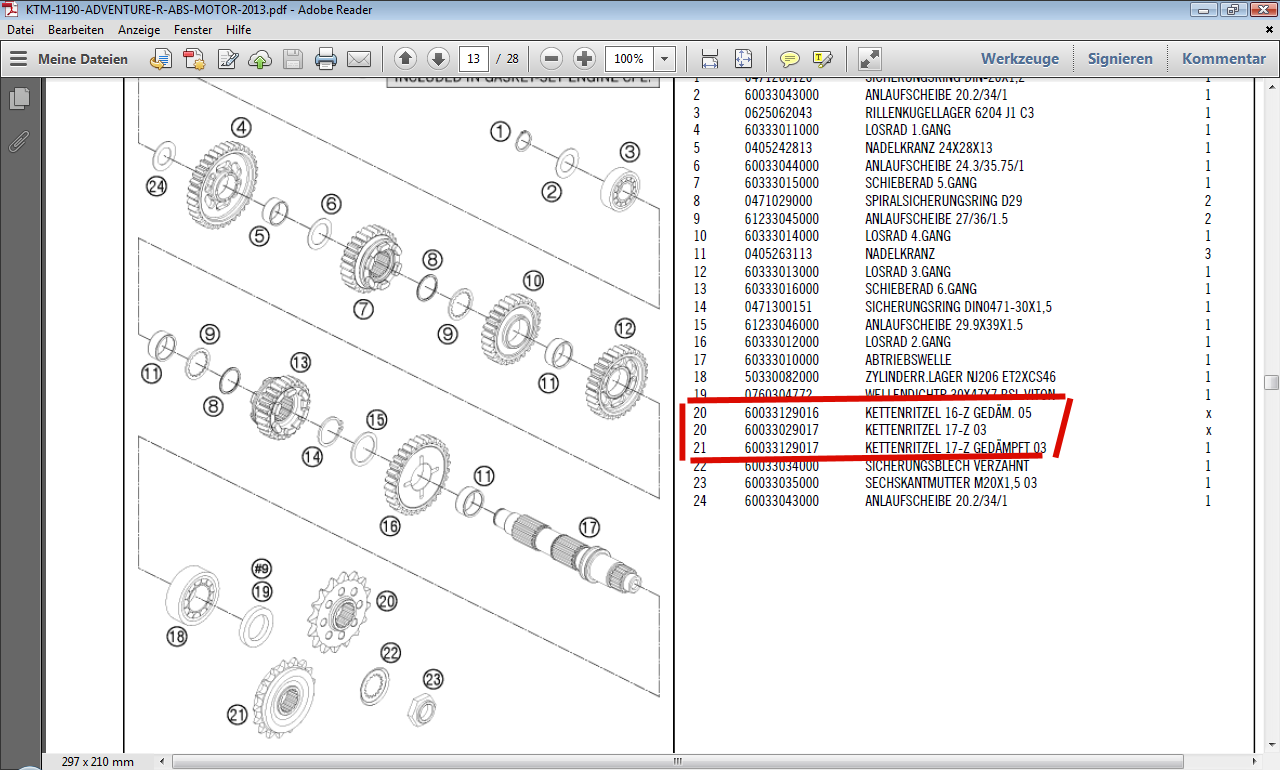 | kretabiker @ Di, 26. Aug 2014, 9:53 hat folgendes geschrieben: | Ich erwecke diesen Fred nochmal zum Leben: bin ja nun auch Besitzer der neuen Adv "R". Zu Hause (auf Kreta) hab ich noch einen kompletten, neuen DID-Kettensatz im Abstellraum, Übersetzung 16:42.