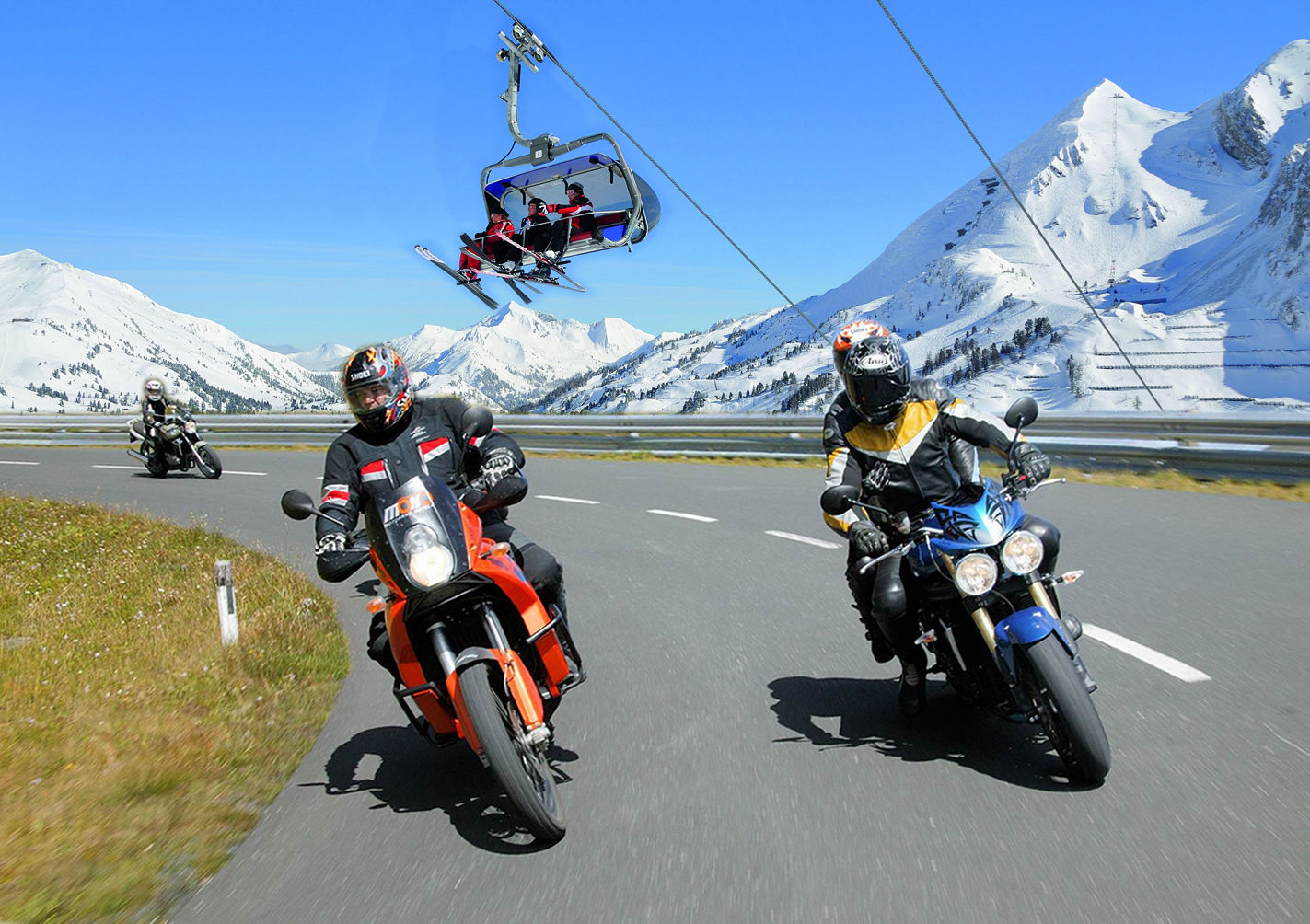 Na Leute, wie schauts aus? Die Straßen sind frei, die Pisten bestens geplegt, Leihski und Boards gewachst und geschliffen. Gibt's hier niemand mit etwas Mut zum Risiko und Lust auf ein außergewöhnlichs Motorradwochenende?
