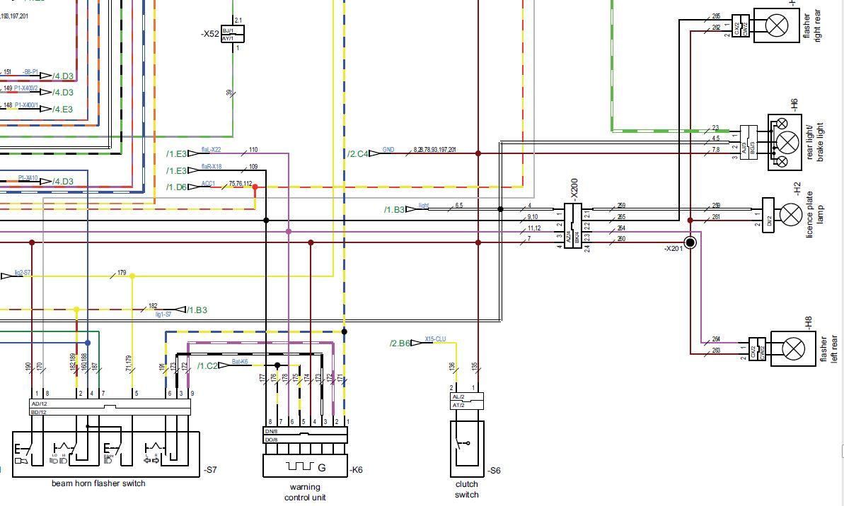 Danke für den Plan. Ich bin zwar kein Elektriker, aber ich kann immerhin erkennen, dass die Blinker auf dem gleichen Kreis mit Nummernschildbeleuchtung und Kupplungsschalter hängen und nicht am Rücklicht. V2Lover vermutet einen Zusammenhang mit dem nachgerüsteten LED Rücklicht. Das kann ich also schon mal streichen.