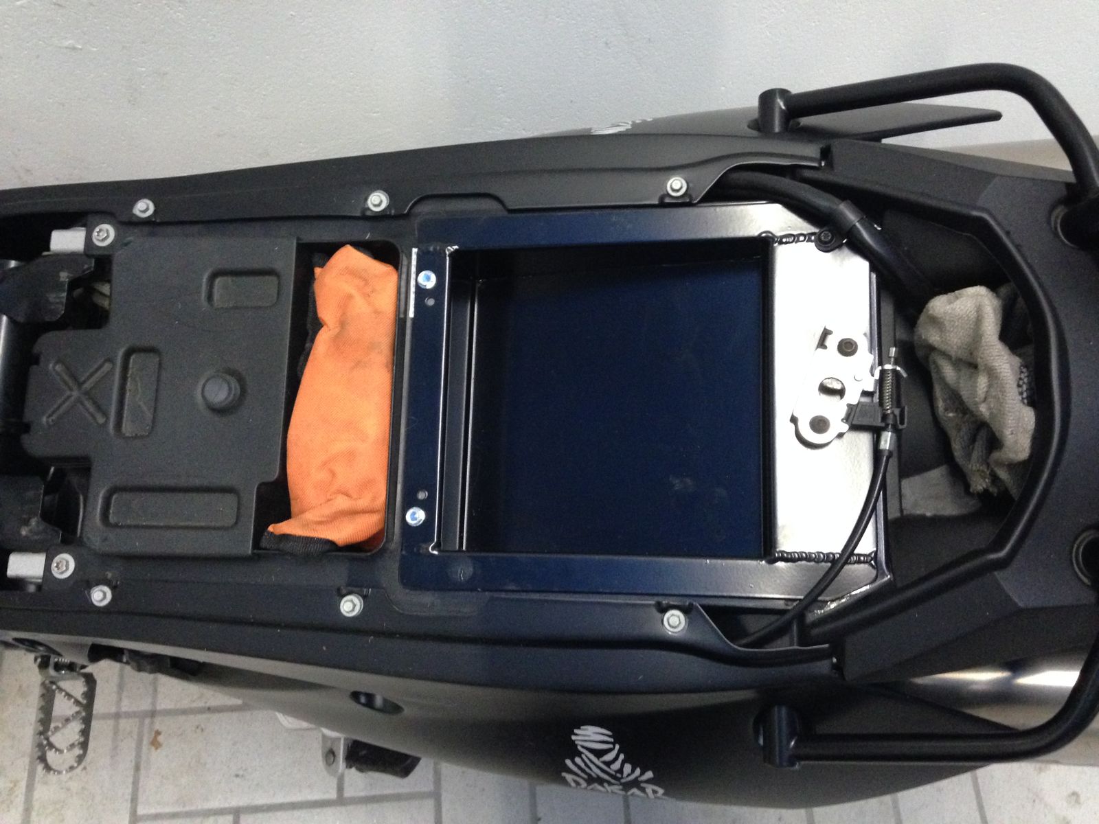 So, nachdem ich gestern Rade angeschrieben hatte wo denn mein Fach wohl bliebe und er mir antwortete, dass es wohl Donnerstag ankäme, war es heute schon da Ich muss sagen, ich bin wirklich begeistert. Das Teil ist geil gearbeitet, als käme es direkt von KTM (vielleicht sogar besser ;-) ). Es ist so passgenau, dass hier weniger vielleicht sogar mehr gewesen wäre. Es passt so ganau in den Rahmenausschnitt, dass bei mir leicht unter Spannung steht. Den Auschnitt am Schloss musste ich leicht nachfeilen und die hinteren Sitzbankgummis um die Hälfte kürzen. Dann passt es wunderbar. Hätte ich passende, schöne Schrauben gehabt, würde keiner merken, dass es nachträglich eingebaut wurde. Hier noch 2 Bilder im eingebauten Zustand.