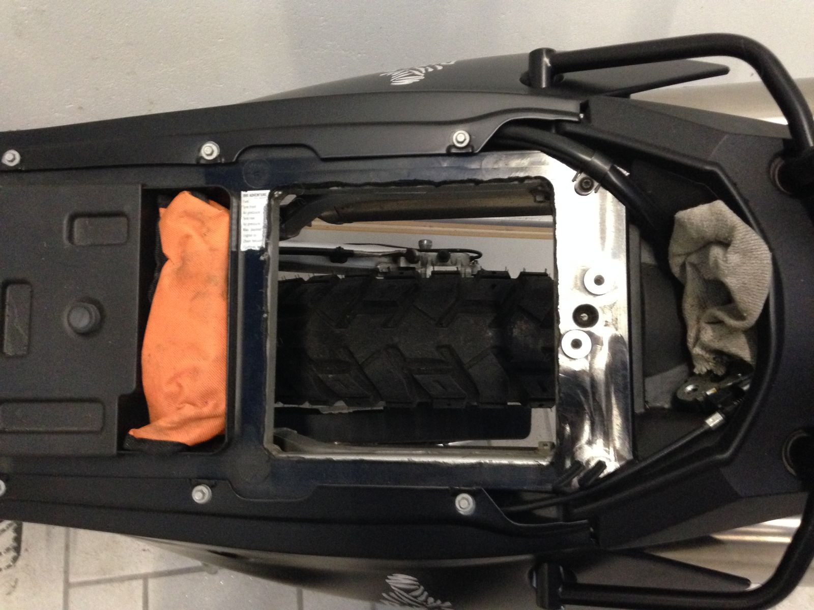 Also bei mir ist unter der Bank sehr viel Drecksuppe, bei sinnvoller Haltung der KTM. Im Foto gut ersichtlich.