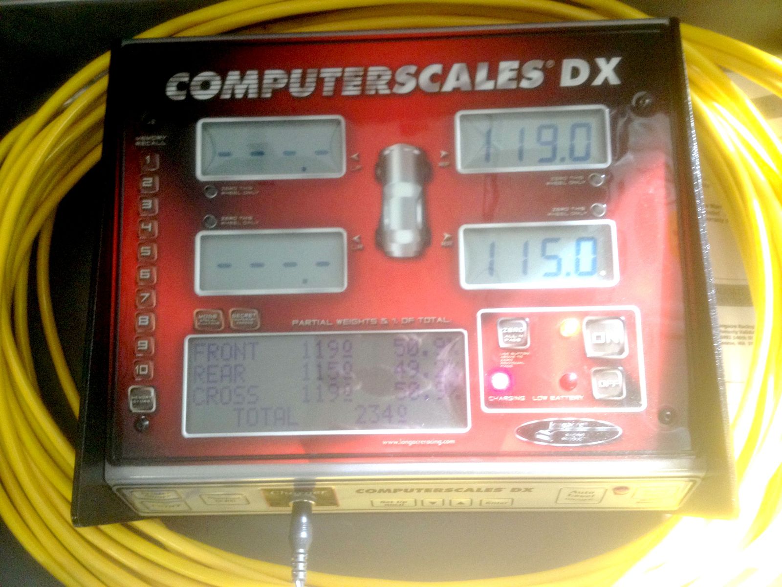 Das Bild zeigt die Werte einer 1190 R vollgetankt ( bis zum Rand ) mit einem Arrow-Endtopf. Bei einer Temperatur von 15° wiegt der Sprit ca. 0,75 kg pro Liter. Die Messtemperatur lag bei ca. 18°/19°. Somit kann man von ca. 0,8 kg pro Liter ausgehen. Das würde bedeuten, dass bei einer Tankfüllung von 23 Liter ca. 18,4 kg Sprit "an Bord" qaren.